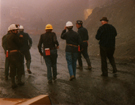 Extension mine Sunday shift poses with the fireboss who carries the safety lamp. |