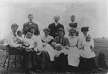 Ivan Crossley (front row left) shorlty after he married Bessie Holtby (front row, 3rd adult from left) and various family and friends.