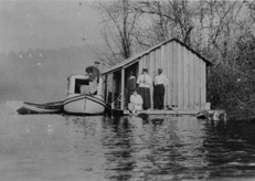 One of several floathouses on Cowichan Lake before World War One. |